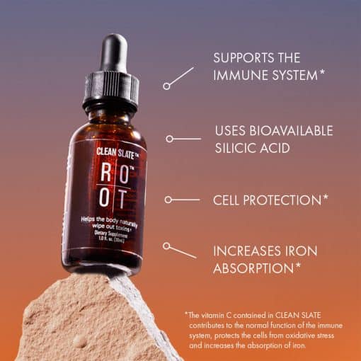 ROOT Clean Slate is obtained through a proprietary process whose formulation enables the extraction of bioavailable silicon dioxide from nature’s most potent volcanic mineral. In addition, vitamin C is added.