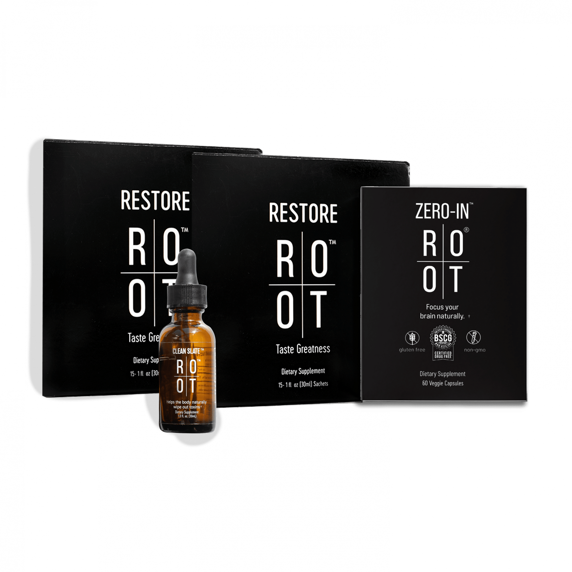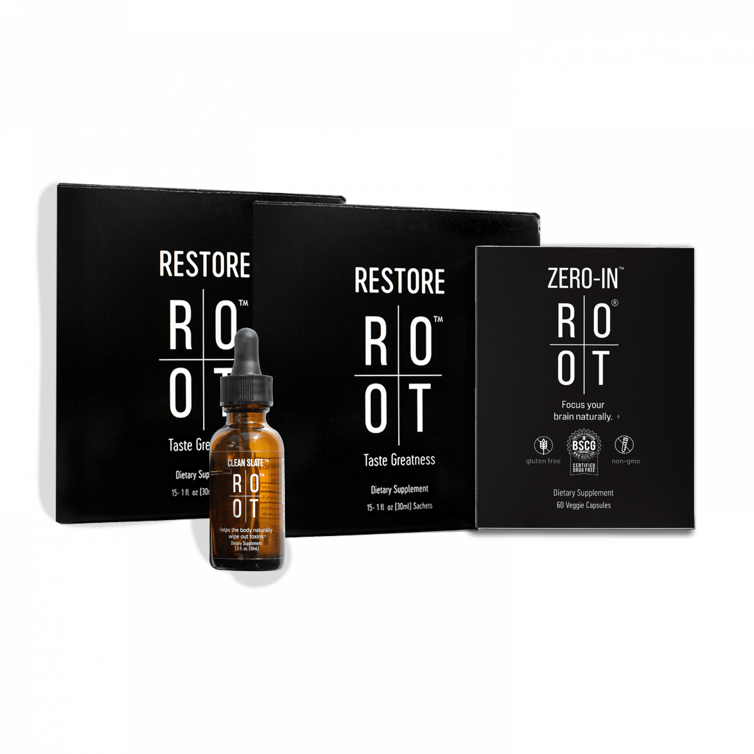 Trinity Pack Plus is a discounted bundle of our products CLEAN SLATE, 2 x RESTORE and ZERO-IN.